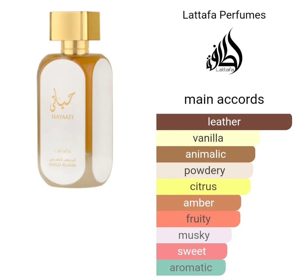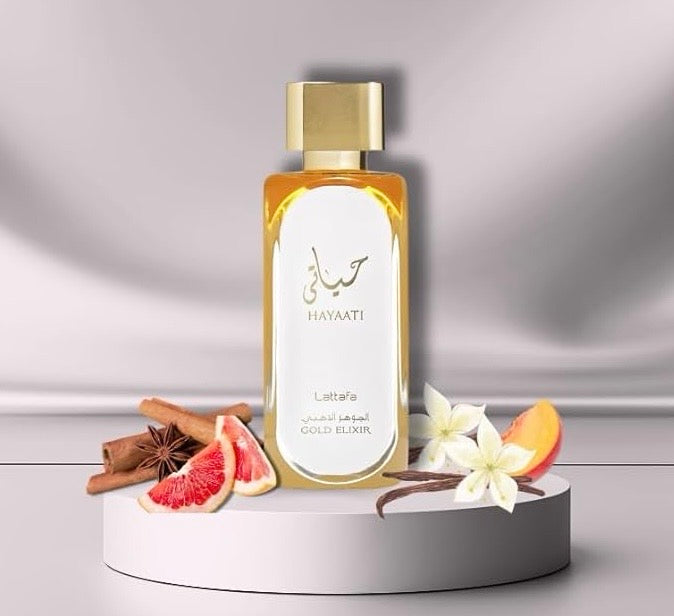 يغلفك عطر Lattafa Hayati Gold Elixir بهالة من الرقي والتفرد - وهو الاختيار الواضح لأولئك الذين يقدرون الأناقة والإلهام من أحد أكثر العطور شهرة في السوق.