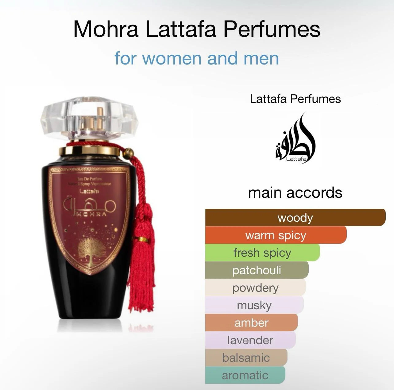 Lattafa Mohra är en doft som får dig att känna dig fantastisk hela dagen. Lattafa Mohra uttrycker optimism och fullkomlig lycka.