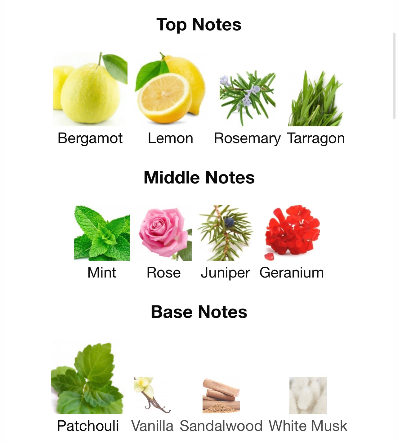 - Hjärtnoter: Geranium, ros, enbär, mynta.