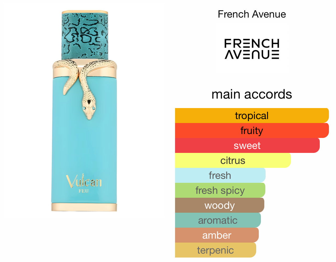 Vulcan Feu från French Avenue, är en fängslande unisexdoft som balanserar tropisk fruktighet med kryddig värme och elegant träighet. Den är inspirerad av God of Fire, en lyxig doftupplevelse till ett rimligare pris.